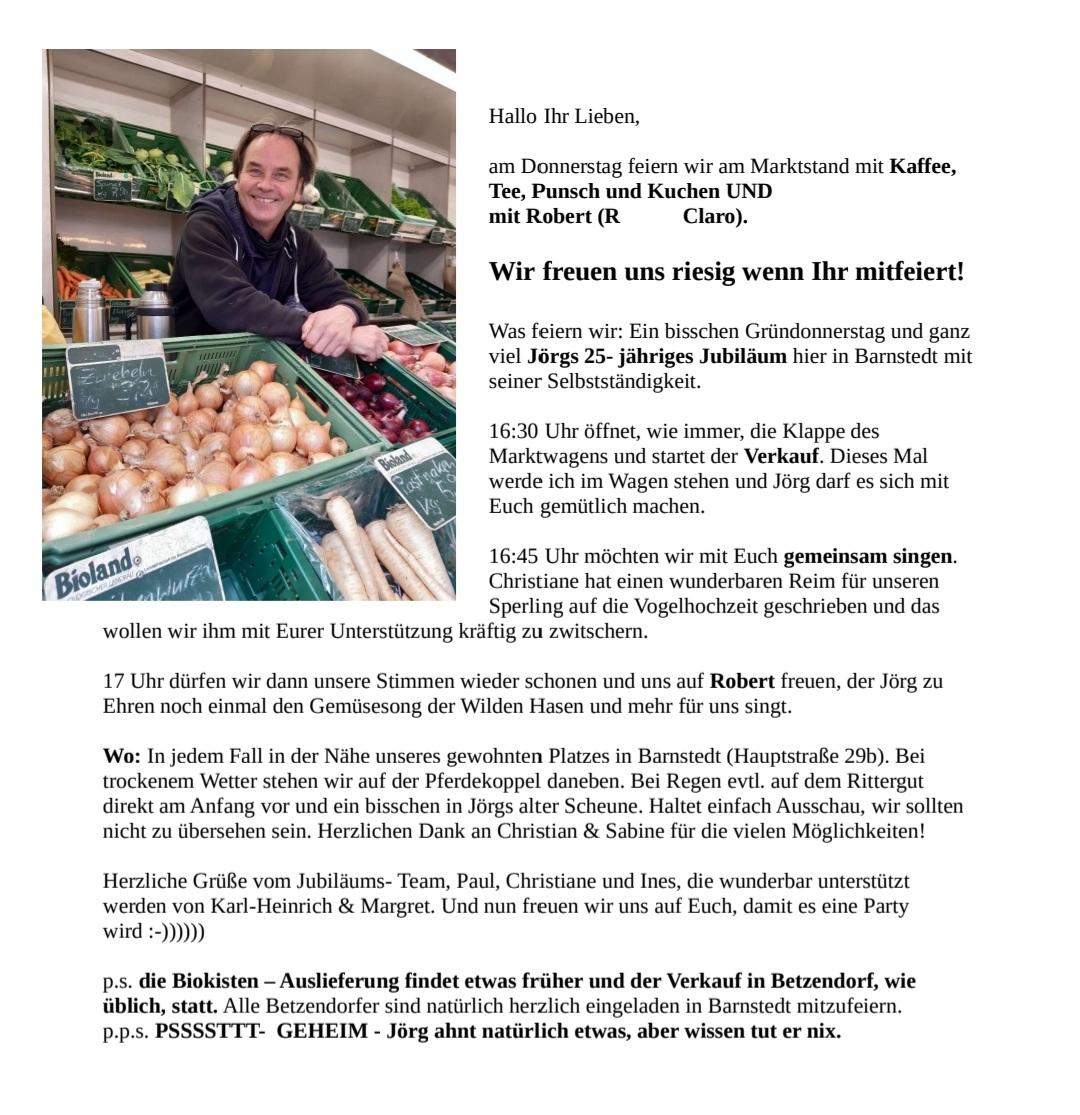 Jörg feiert am Donnerstag sein 25. Jubiläum mit seiner Selbständigkeit in Barnstedt!